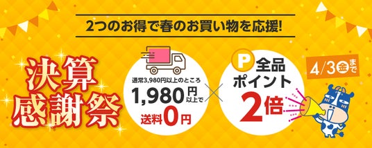 1,980円で送料0円&全品ポイント2倍!ご家庭向け通販サイト「ココデカウ」が『決算感謝祭』を4月3日まで開催