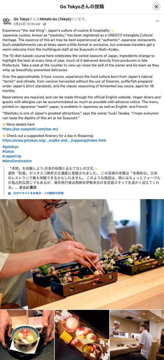2.公式情報発信東京都公式観光サイト「Go Tokyo」のFacebookにて、紹介する投稿を実施(英語・フランス語)