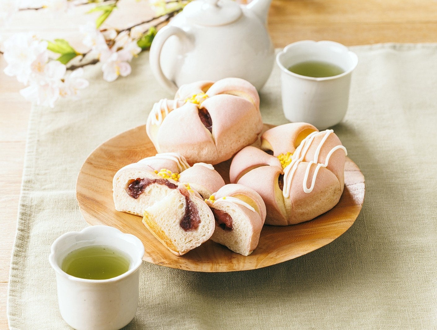桜餅風フィリングとつぶ餡を包み、ビスケット生地をのせて桜の形に焼き上げました。
