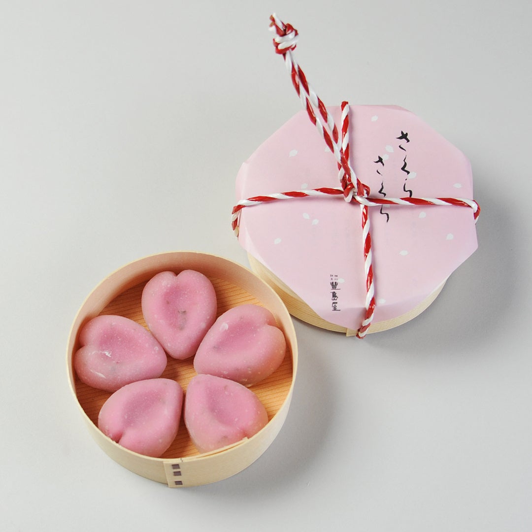 塩漬けした桜葉を刻み紅餅に練り込み羽二重求肥で包み、桜の花びらの形にしました。