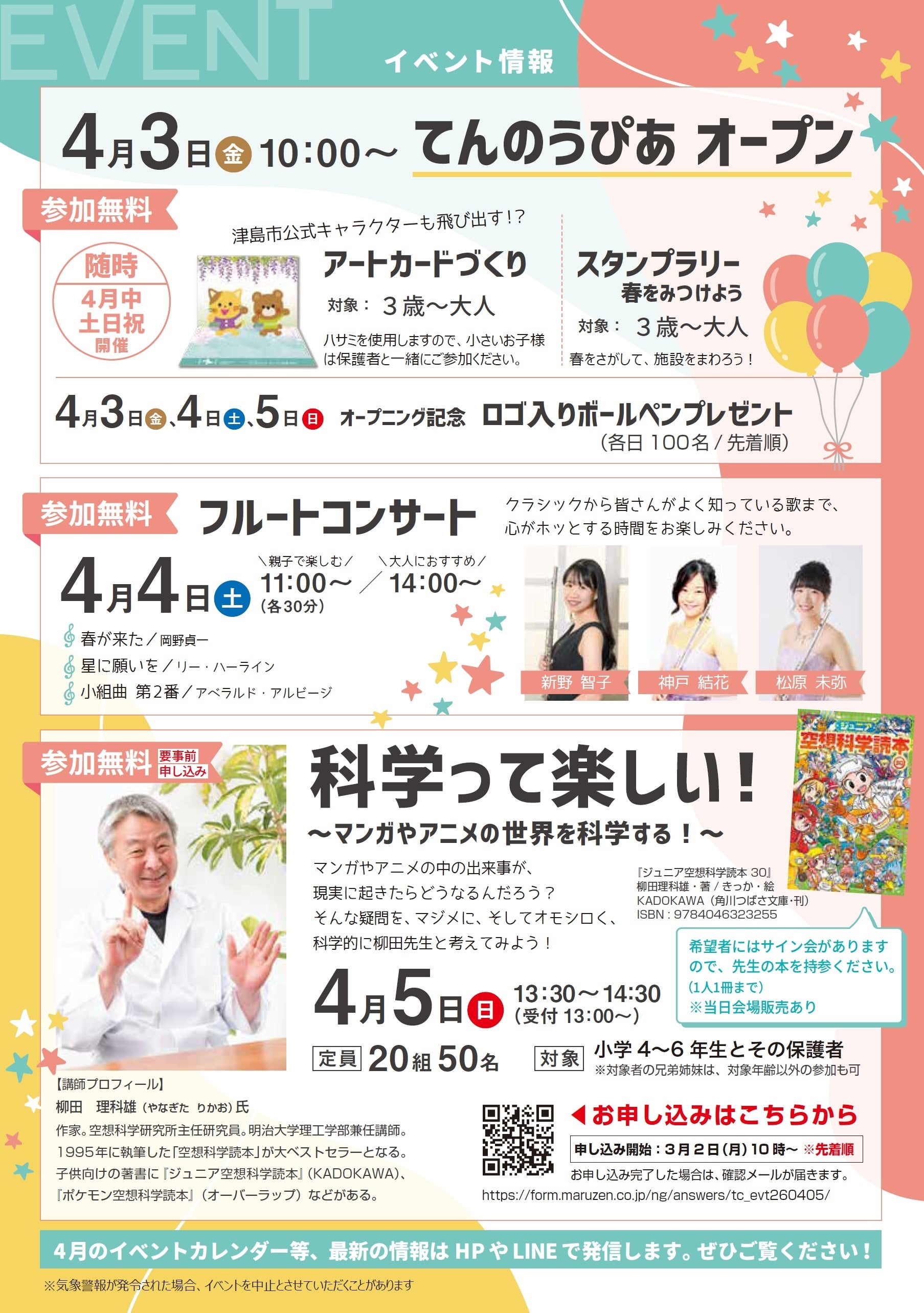 こどもから大人までどなたでも楽しめるイベントを令和8年4月3日(金)から5日(日)まで開催します。