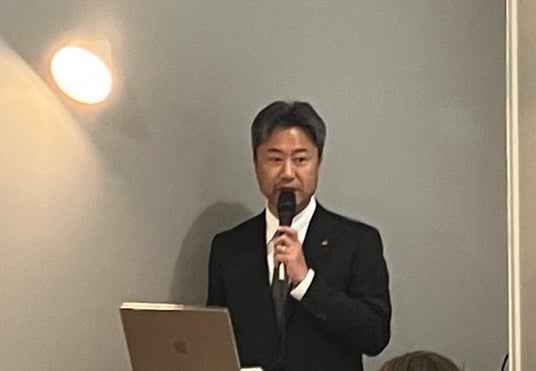 発表会では、森永乳業マーケティング本部 ミルク事業部長の荒生孝が「森永乳業と牛乳事業」をテーマにプレゼンテーションを行いました。 約6,000億円規模の牛乳市場において、飼料費高騰等による生乳取引価格の引き上げで店頭価格が上昇し、数量は微減するも金額ベースでは伸長している現状を説明しました。その中で全国に地域密着型メーカーが多い中、同社は約11%のシェアを占めており、こうした環境下で、森永乳業は「乳の消費拡大」「酪農家への貢献」「乳の価値向上」を重要使命と位置づけ、「かがやく笑顔のために」をキーワードに基礎研究の推進や健康への貢献に取り組んでいることを説明しました。 さらに、飲用シーンの拡大やレシピ提案など、牛乳を日常に取り入れやすくする活動を紹介。「赤ちゃんからシニアまで幅広い世代のニーズに応え、おいしさと健康価値を提供し、長く飲み続けていただける体験づくりを進めたい」と今後の展望を語りました。
