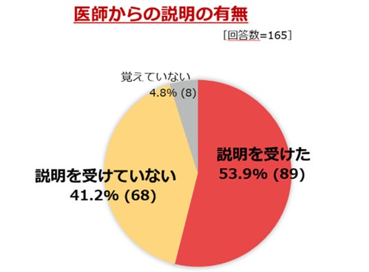 8) 多遺伝子検査対象165名のうち、41.2%が「医師からの説明を受けていなかった」と回答しました。