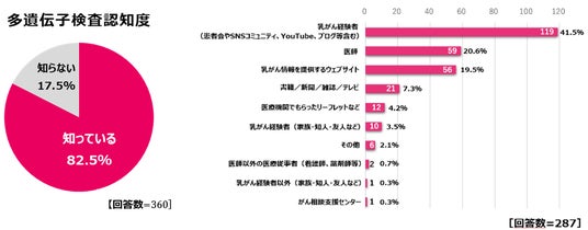 - 乳がん患者さんの82.5%が多遺伝子検査を認知しており、患者さん自身が積極的に検査や治療に関する情報を求めている実態が明らかになりました。