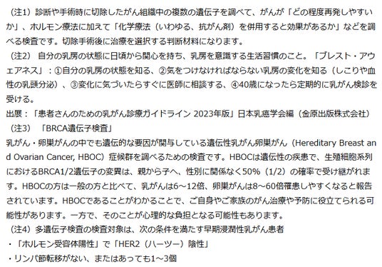 - 今回の調査結果は、多遺伝子検査で得られる情報を最大限に活用し、患者さんと先生が十分に話し合ったうえで、納得し安心して最適な治療を選択するSDMをさらに深めていくことの重要性を示しています。