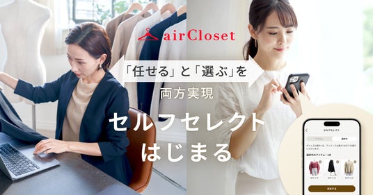 株式会社エアークローゼット(本社:東京都港区、代表取締役社長 兼 CEO:天沼 聰)が運営する月額制ファッションレンタルサービス『airCloset(エアークローゼット)』は、お客様自身がアイテムを選択できる「セルフセレクト」の提供を開始します。
