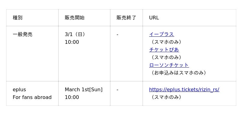 ※開場・開始時間は予定です。決定次第RIZIN FFオフィシャルサイトにてご案内します。