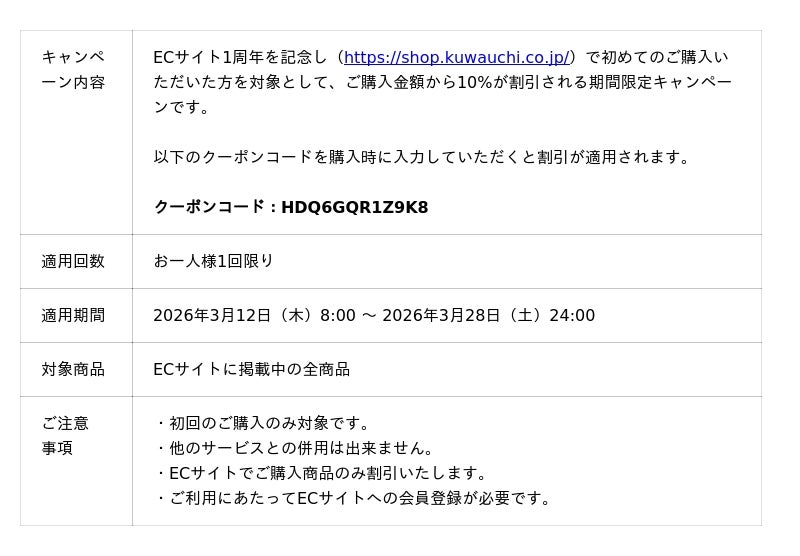 ウェブサイト:https://kuwauchi.co.jp/