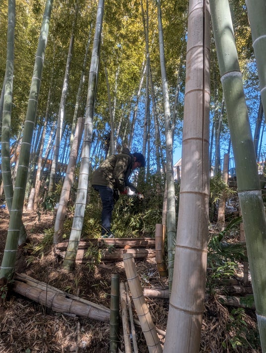 展示コーナーに設置する看板は、配送拠点の宮前センター敷地にある、竹林の間伐材で制作しました。手がけたのはNPO法人横浜移動サービス協議会(横浜市中区長者町、服部一弘理事長)が運営する就労継続支援B型事業所のIKIIKIカンパニー(横浜市中区長者町)の利用者です。地域環境にも配慮する生協の活動の一環として、地域資源を活用します。