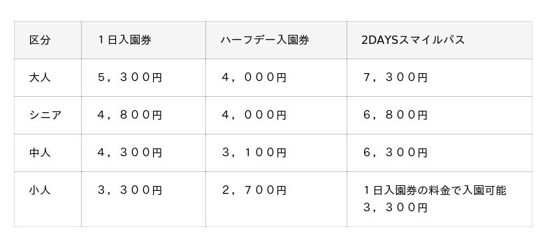 2.ハーフデー入園券︓午後2時30分から 営業終了時間までお楽しみいただけます。