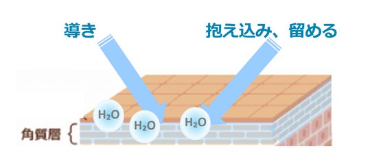 "うるおいドライブ成分(※9)"が、角質層をうるおいで満たして美容成分の通り道をつくります。さらに、"うるおいタンク成分(※10)"が角質層内で水分をしっかり抱え込み、化粧水とジェル、ふたつのうるおいを肌に留めます。