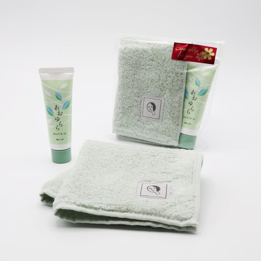 あおゆらら はんどくりーむ・ふんわりタオルハンカチ ミントグリーン