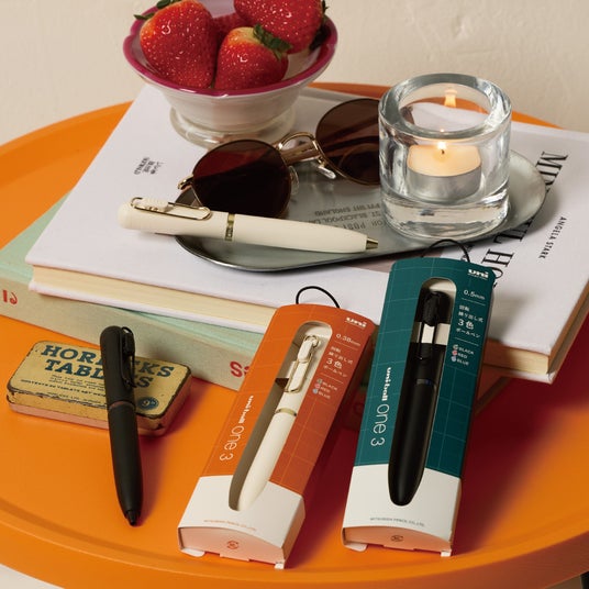 濃く、鮮やかに発色するインクが特徴の「uni-ball one」シリーズ初の3色ボールペン。通常モデル4色に加え、クリップや口金に特別塗装を施したギフト仕様も2色展開。