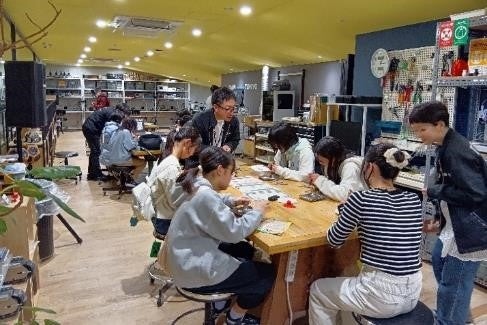 普段何気なく使っている配線ケーブルの役割やアクリルの加工方法を学び、本物の工具を使って圧着の体験を行いました。子供たちは、カラフルなチャームや配線ケーブルを自分で選び、組み立てる時間を満喫。無機質に見える工業用パーツをアクセサリーへと変身させ、ものづくりの達成感を感じ、完成した自分だけのアクセサリーを身につけて、満足げな笑顔を浮かべていました。