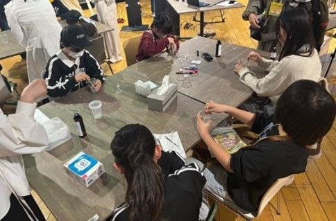 会場では、女子小中学生に関心の高い「美容」や「ファッション」を切り口に、科学技術を体感できる多彩なブースが展開され、多くの親子連れで賑わいました。日常生活を支える様々なテクノロジーの仕組みやその魅力に触れることで、子供たちが未来への可能性を大きく拡げる貴重なひとときとなりました。■"細胞"のヒミツ発見!美容液づくり体験(アンファー株式会社)