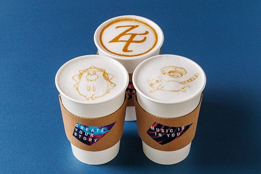 - ずっと真夜中でいいのに。コラボカフェラテ 各690円(税込)「うにぐりくん」などのラテアートを描いたカフェラテ(絵柄3種類)です。