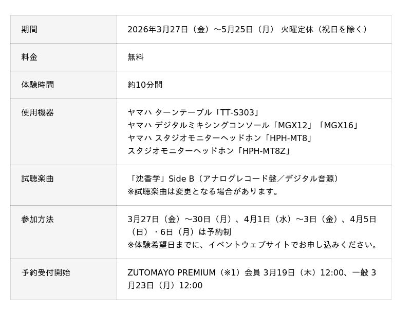 期間:2026年3月27日(金)~5月25日(月)、会場:Yamaha Sound Crossing Shibuya(ヤマハサウンドクロッシング渋谷)
