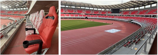 メインスタンド中央上段から、トラック・フィールド競技全体を見渡せる観戦席