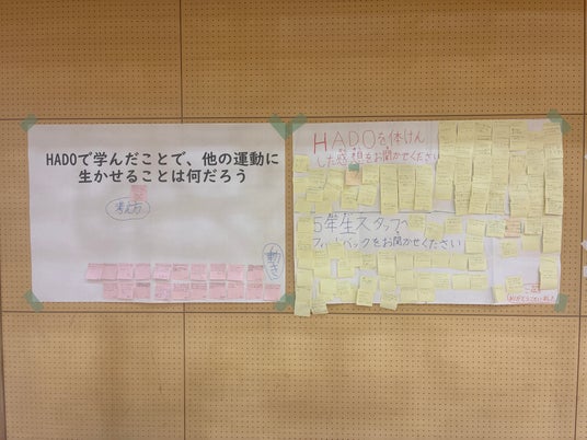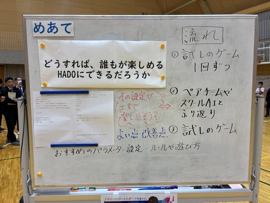 本時の学習は、「どうすれば誰もが楽しめるHADOにできるだろうか」という課題で取り組みました。