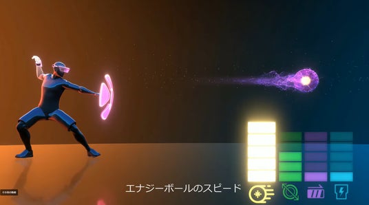 頭にヘッドセット、腕にセンサーを装着し、エナジーボールやシールドを駆使して戦います。