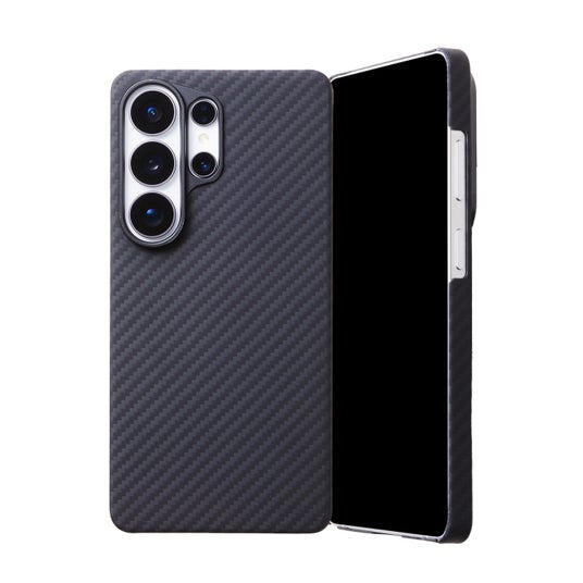 表面の特殊マルチコーティングにより防汚・耐傷性能を確保。カーボンファイバーを思わせる美しい織り目が、フラッグシップにふさわしい高級感を演出します。また、カメラ周囲にはアルミフレームを採用。アラミド繊維ボディとの組み合わせで、ケース全体の剛性を高めながらカメラ部への衝撃もしっかりガードします。4G・5G通信やワイヤレス充電、各種非接触決済への影響も一切ありません。