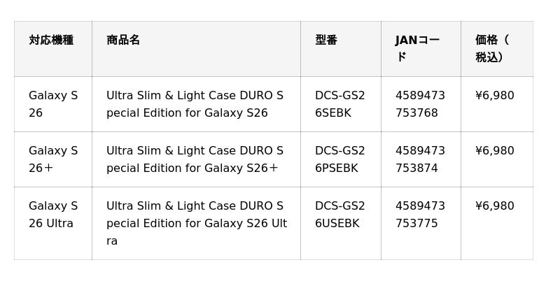 ディーフ株式会社(本社:東京都港区、代表:荒木 徹)は、Samsung Galaxy S26シリーズ向けのスマートフォン保護アクセサリー3製品を発売いたします。フラッグシップモデルにふさわしい素材と設計で、大切な端末を長く美しく使い続けるためのラインアップです。
