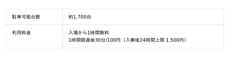 以後30分経過後30分/100円(入庫後24時間上限 1,500円)