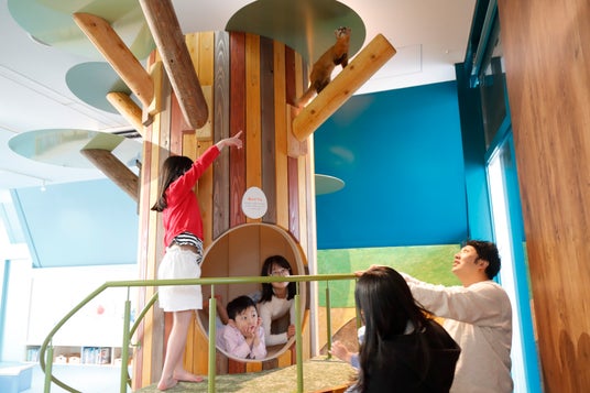 親子で水槽を眺めながらごろごろしたり、動物の巣穴にもぐりこんだり。赤ちゃんがゆったり過ごせるゾーンです。ごろごろできるエリア「のんびり海(うみ)」には、親子でみやすいように水槽を設置しました。おむつ替えや授乳をしながら水槽を眺めれられるベビーケアルームもあります。「すごもり島(じま)」では、巣材を持ち込んで生き物の巣穴におこもりできます。ユーラシアカワウソなど動物のはく製があり、子どもが自ら発見し、観察する喜びを味わえます。