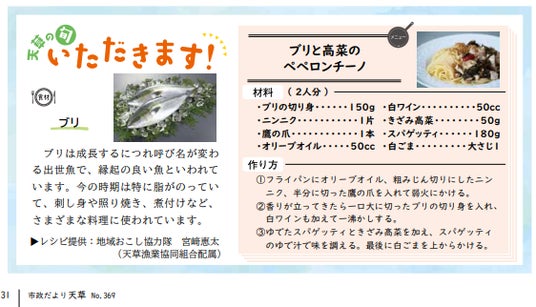 市政だより天草 令和8年1月号「天草の旬いただきます!」掲載