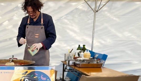 「天草お魚まつり」では天草の地魚(未利用魚/イスズミ)を使った大鍋で炊く魚介パエリアを100食分販売されました。