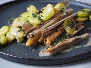 とれたてマテ貝とそら豆の白ワインバター蒸し