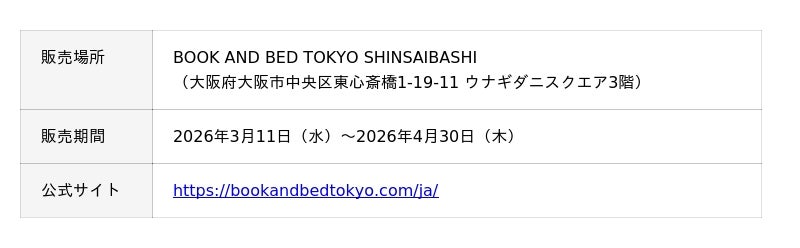 アトリエブックアンドベッド社が運営する「BOOK AND BED TOKYO SHINSAIBASHI」は、“泊まれる本屋”として、本に囲まれた非日常的な空間体験を提供してまいりました。