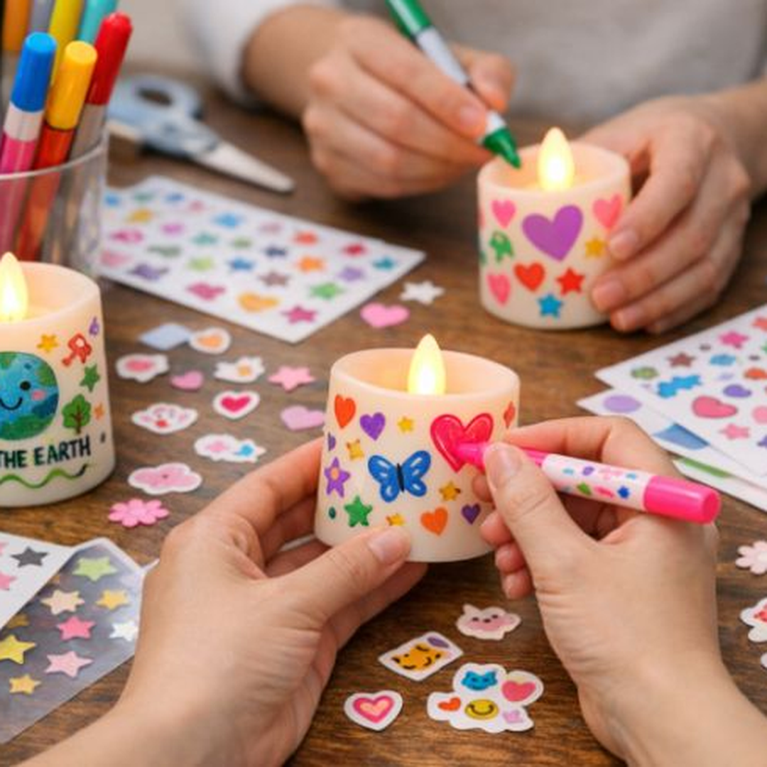 色とりどりのマーカーやシールを使い、世界にひとつだけのオリジナルLEDキャンドルをつくる無料