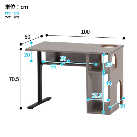 【製品名】猫ハウスデスク LCD-1000-GY【サイズ】幅 100cm × 奥行 60cm × 高さ 70.5cm