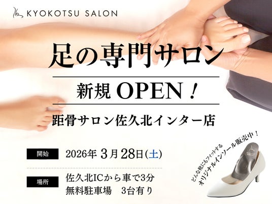 足の専門サロン「距骨サロン」は、2026年3月28日(土)、長野県佐久市エリアに「距骨サロン佐久北インター店」を新規オープンいたします。
