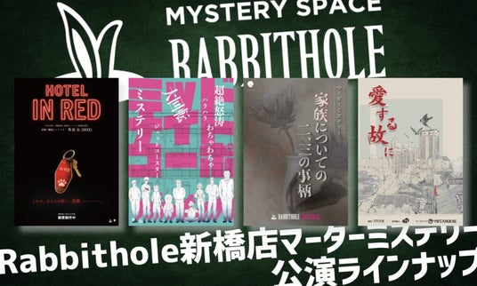 BAKERUグループで、体験型エンターテインメントを提供する株式会社ミスティブ(本社:東京都渋谷区、代表取締役社長:酒井りゅうのすけ)は、2026年3月14日、マーダーミステリー専門店「Rabbithole」新橋店をオープンします。新橋店では新たに、新作マーダーミステリー「HOTEL IN RED-ホテル・インレッド-」公演もお楽しみいただけます。