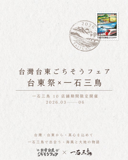 一石三鳥グループは、台湾・台東県の豊かな食材を使用した期間限定フェア「台東祭」を、2026年3月14日(土)から6月13日(土)まで開催。東京・京都・大阪の計10店舗にて、台東の魅力を表現した特別メニューを提供いたします。