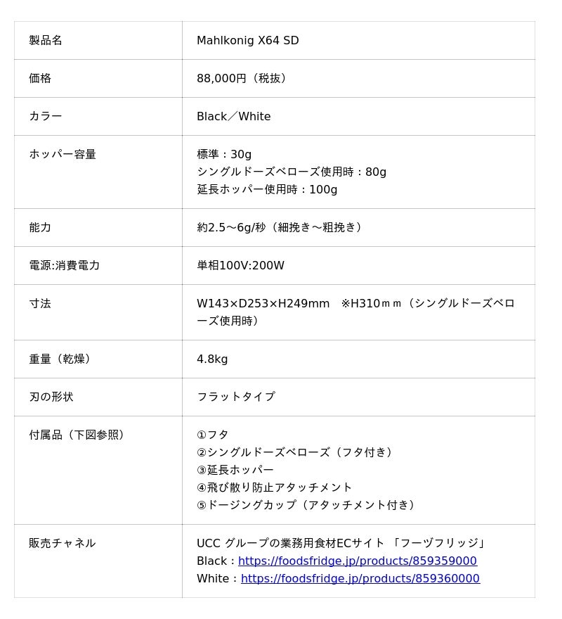 コーヒー関連機器製造販売、メンテナンス事業などを行うラッキーコーヒーマシン株式会社(本社:兵庫県神戸市、代表取締役社長:平岡将志)は、コーヒーグラインダーのリーディングブランド・Mahlkonig(マルケニッヒ)より家庭用小型グラインダー『X64 SD』を3月16日(月)にUCC グループの業務用食材ECサイト 「フーヅフリッジ」 などで発売します。
