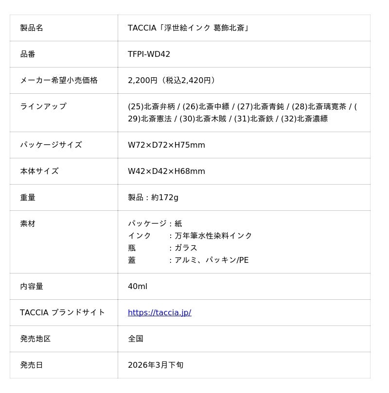 高級筆記具ブランド「TACCIA」から 浮世絵をイメージした万年筆用インク 浮世絵インクシリーズ 「葛飾北斎」が新発売
