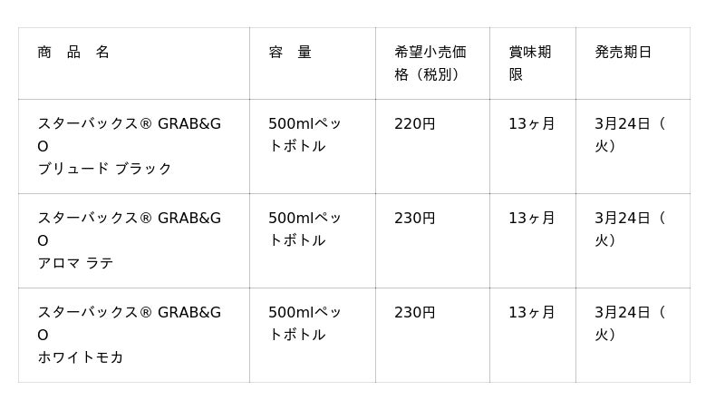 スターバックス・コーポレーション(本社:米国 シアトル、CEO:ブライアン・ニコル)と、サントリー食品インターナショナル株式会社(本社:東京都、社長:小野真紀子)は、ご好評いただいているペットボトル入りコーヒーシリーズの「スターバックス(R) GRAB&GO」をリニューアルし、「同 ブリュード ブラック」「同 アロマ ラテ」「同 ホワイトモカ」を3月24日(火)から全国のセブン‐イレブン限定で順次切り替え発売します。