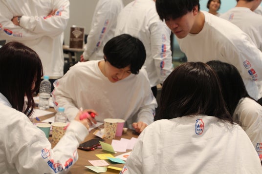 「土日ミルク」は学校給食のある小中学生や保護者を主に想定した取り組みですが、今回は「給食がなくなった直後の世代は“牛乳”から距離が生まれやすいのではないか」という仮説の下、高校生・大学生に着目しました。まず実態調査(※)を行い、牛乳との距離を感じる人は約8割いる一方で、ミルクティー、ラテ、プロテインなどを週2回以上飲む層は約4割、その約6割強は飲用時に「牛乳を飲んでいる意識がない」と回答するなどの結果が得られました。動画制作に当たっては、高校生・大学生が酪農乳業について学んだ後、ワークショップを通じて牛乳に対する本音とアイデアを議論しました。「どんな言葉・シーンなら高校生・大学生に届くか」について意見交換を行い、この意見を基にキーメッセージやナレーションを決定しました。