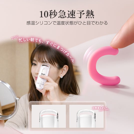 NTC温度制御機能により、過度な温度上昇を防止。まつ毛に優しい温度検知シリコンを採用し、デリケートなまぶたの火傷を防ぎながら、まつ毛を傷めずにカールが可能です。汚れを拭き取りやすい構造で、使用後のお手入れも楽々。
