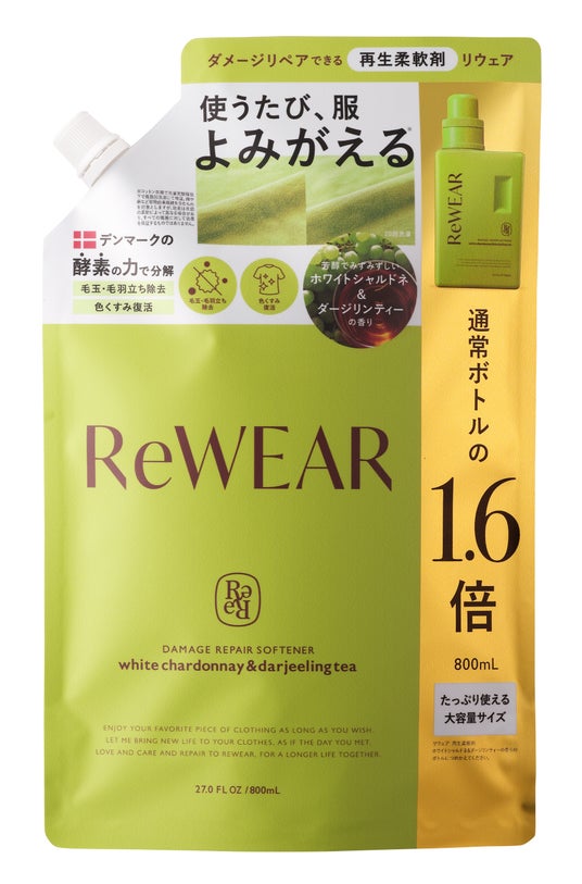 【累計販売数100万個を突破*】 再生柔軟剤 ReWEAR(リウェア) 4日で完売**した「ホワイトシャルドネ&ダージリンティー」の香りが定番化! 芳醇でみずみずしく、多幸感あふれる香り