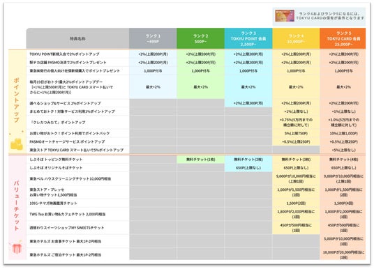 ※ランク4以上はTOKYU CARD(クレジットカード)の保有が条件となります。