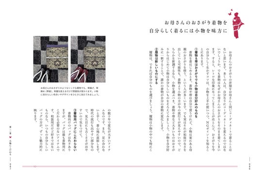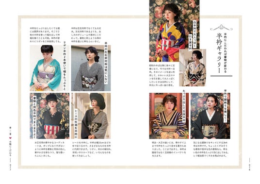 本書では、アンティーク着物の魅力やスタイリングの考え方を、豊富な実例とともに紹介。