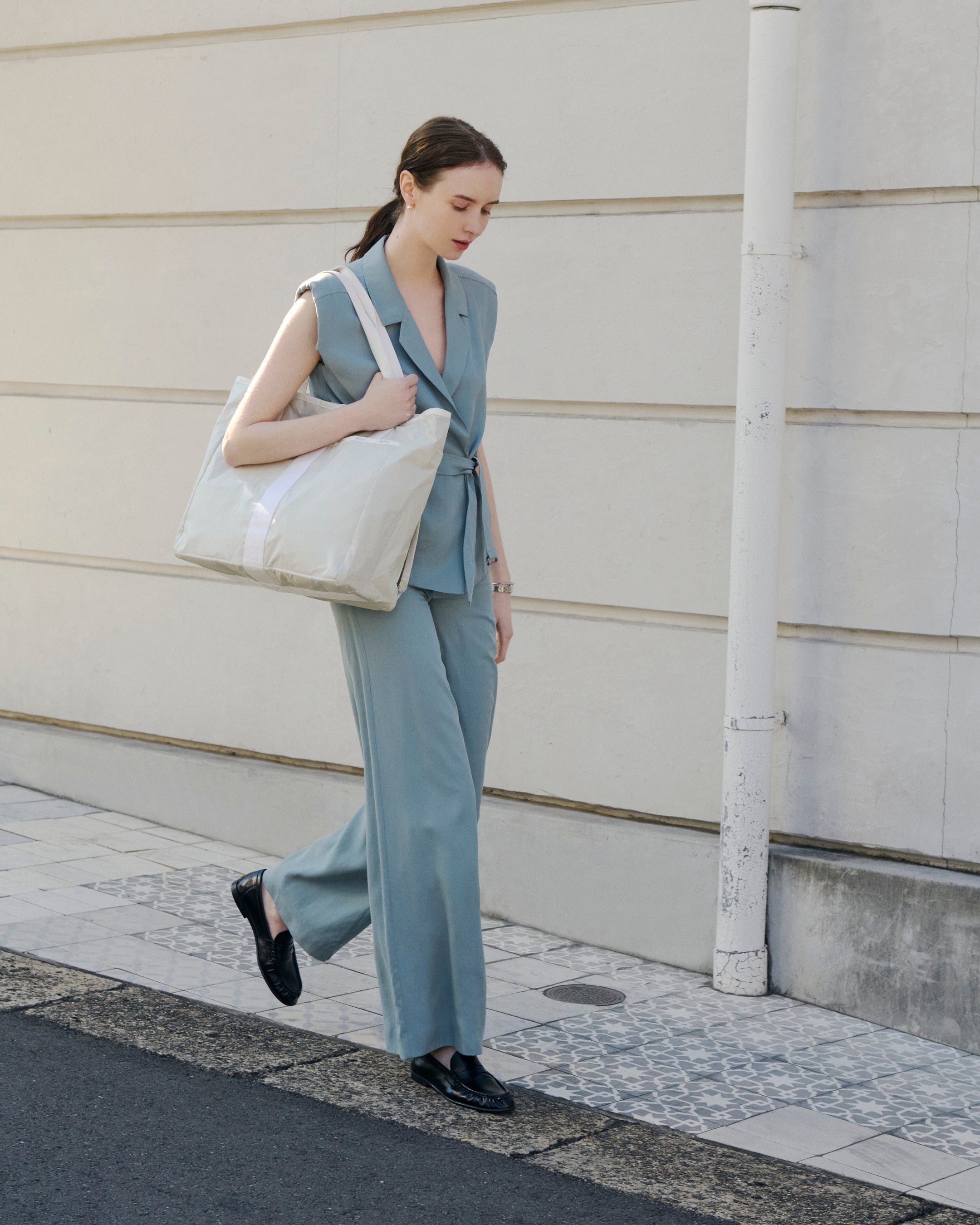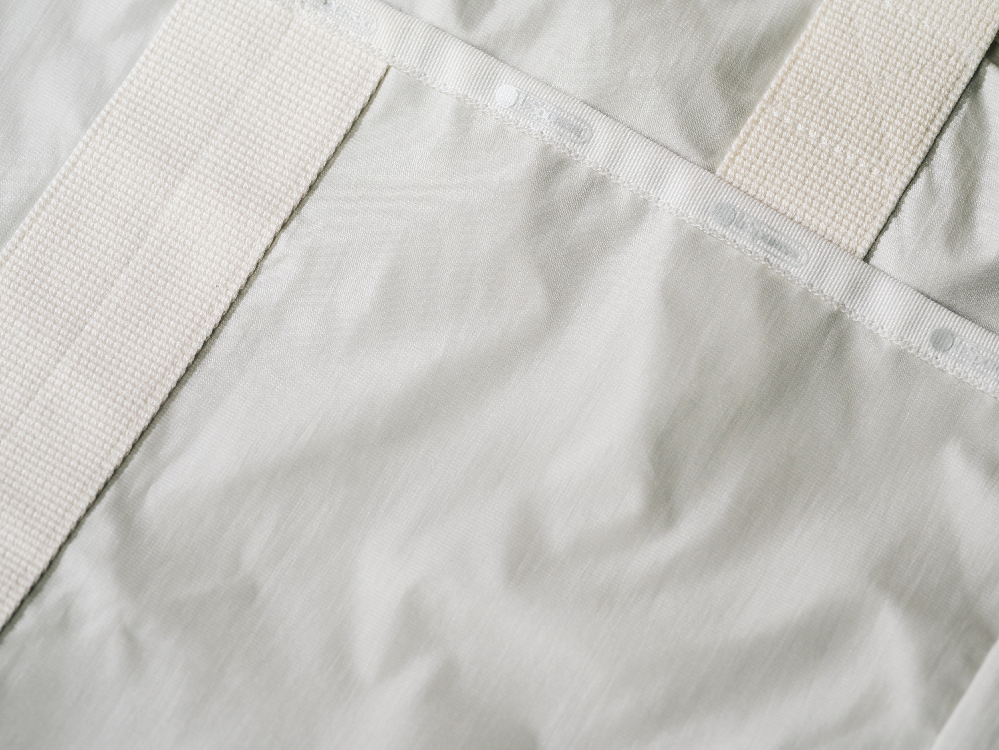 日本製マイクロリップストップナイロン生地石川県で織り、福井県で染色・コーティングした日本製高品質ナイロン。軽さとハリ、上品な光沢感を両立しています。