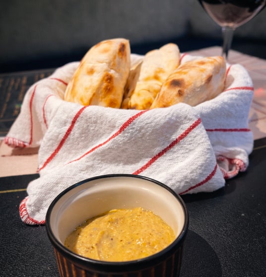ロワール地方の伝統的な小さなパン「フエ(fouee)」をオーブンで焼き上げ、熱々の状態で提供。