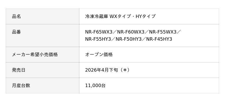 ▼[プレスリリース]「霜つき抑制冷凍」搭載 冷凍冷蔵庫 WXタイプ・HYタイプを発売(2026年3月18日)
