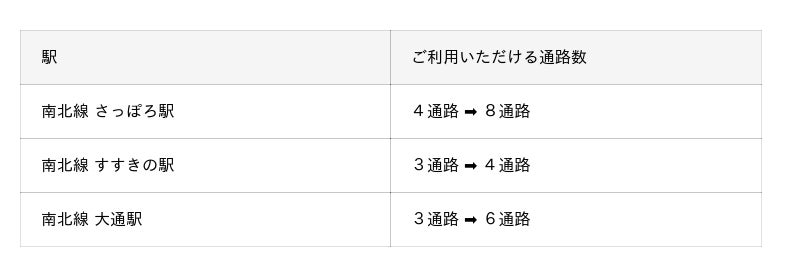● 札幌市営地下鉄のみが対象のサービスです。他の交通機関でのご利用は対象となりません。