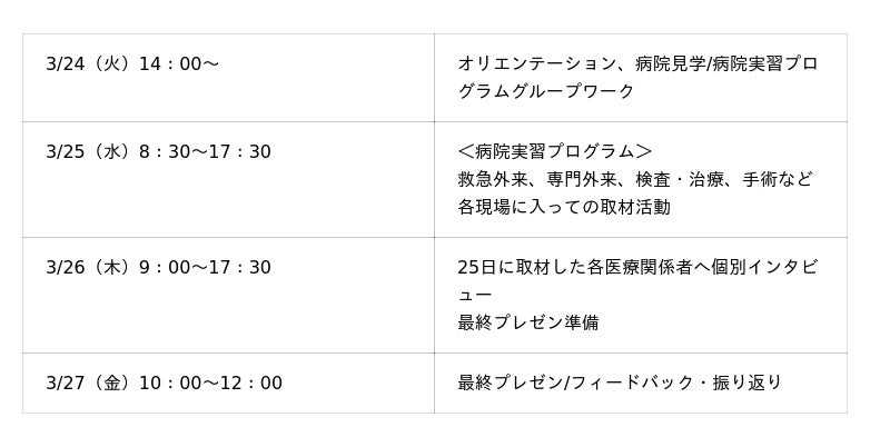 3/24(火)~27(金) 4日間のスケジュール(予定)